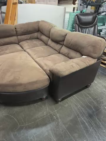 Crafted with a mix of luxurious brown suede and pleather, this sectional adds both comfort and style to any living space. The combination of materials creates a sophisticated look, while the sturdy construction ensures long-lasting use. Elevate your home decor with this elegant and durable sectional.