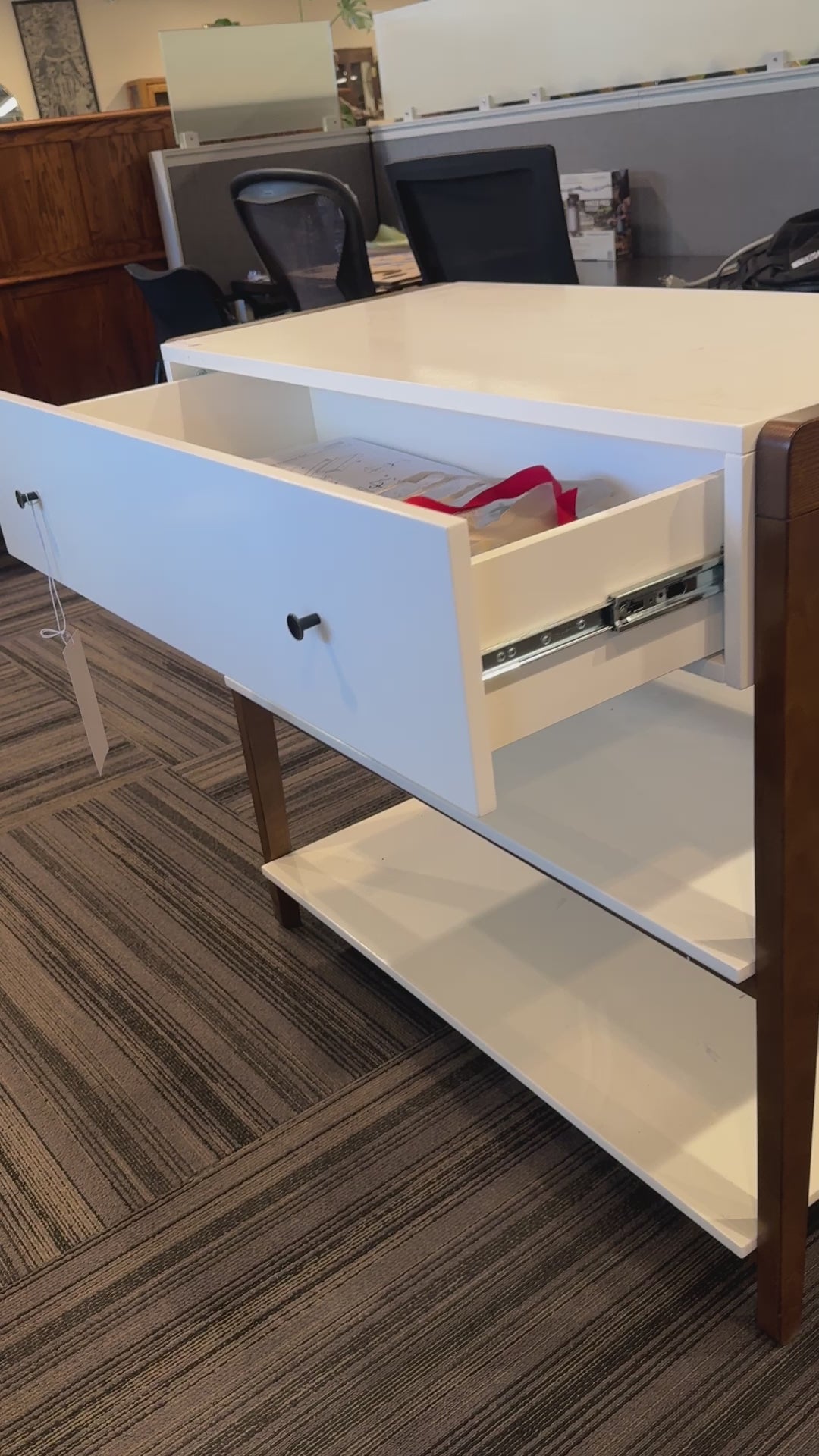 - Finished in child-safe 60% water-based White paint and 100% water-based Pecan stain.